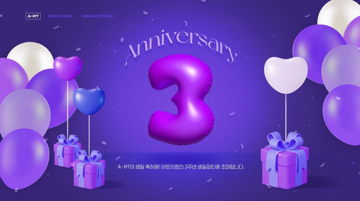 뿐만 아니라 아트닷컴 ‘3주년 댓글 이벤트’도 실시한다. 해당 이벤트 페이지에서 3주년 축하 메시지를 댓글로 남기면 추첨을 통해 총 30명에게 ABC마트 기프트카드 3만 원권을 선물로 증정한다.
