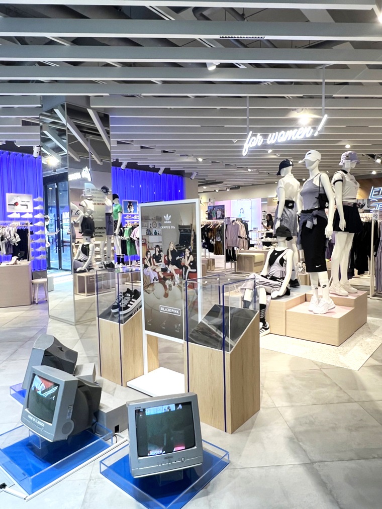 특히 1층은 전체를 여성 고객에게 최적화된 ‘우먼스ㆍ레이디스’ 코너로 꾸몄다. 여성 시야에 맞춘 상품 배치를 비롯해 여성 고객을 세심하게 배려한 조닝이 돋보인다. 아이보리와 우드톤 인테리어를 적용해 전체적으로 화사한 분위기를 연출했다. 2, 3층은 맨즈 코너, 탑티어 슈즈와 의류 상품을 취급하는 ‘스포츠 전문관’ 등을 만나볼 수 있다.